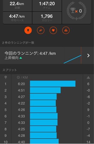 25km 4.5分ペース走。 走り始めから調子悪い。 入りの5kmは良いとしてペースが上がらない。 そして不安定。 冷えたせいかトイレに寄って、仕切り直そうとしたけど やっぱりダメ。トイレ停止は3回で心折れた。 15km過ぎたらジョグまで落ちて、止めても良いけ…