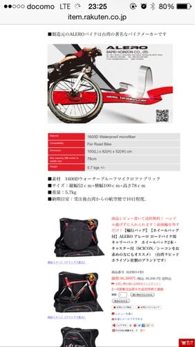 sciconエアロコンフォートが売り切れでお嘆きの貴方。 ALERO Bike Carry Bag- CB1 これ、安くて良さそうです。 http://item.rakuten.co.jp/zenrin-ds/alero-cb1/?force-site=pc&l2-id=shop_sp_pcview_icon 36,389円 (税込 39,300 円) 送料込! YouTube動画見…