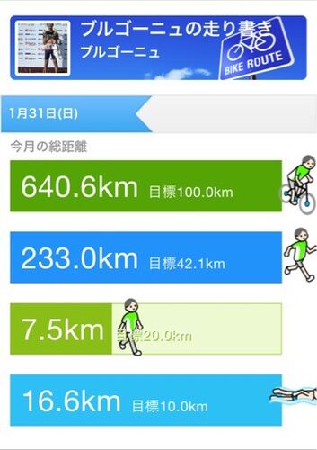 スイム16.6km バイク641km ラン233km 腹筋地獄とバランスシューズ75分 エクストラウイークを重ねた1月。 いよいよ本メニューが始まりますが、 ちょっとやり過ぎて膝故障。 不吉な予感がします。
